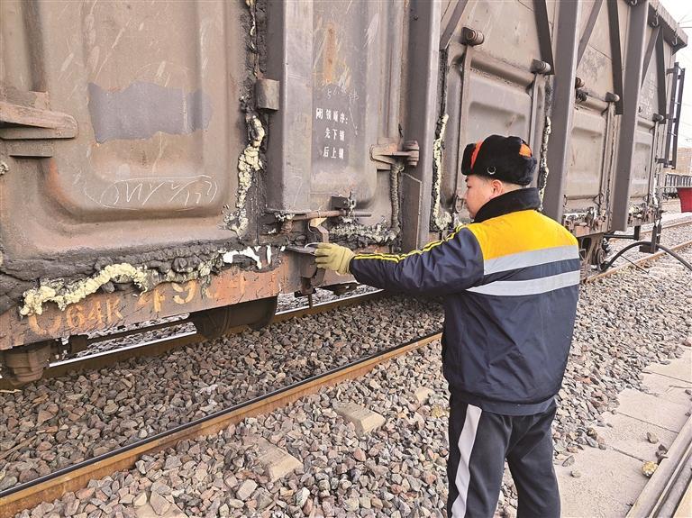 车轮碾过钢轨,发出“吱吱呀呀”的声响。站长全旭东带领调车组队员,沿着区间线路路肩和站内股道中间缓步前行,目光紧锁旋转的轮沿,生怕错过任何一处线路凸凹。