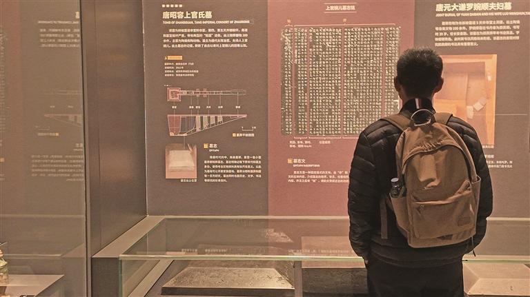 12月5日,游客在陕西考古博物馆参观唐昭容上官氏墓志并盖。 本报记者 赵茁轶摄