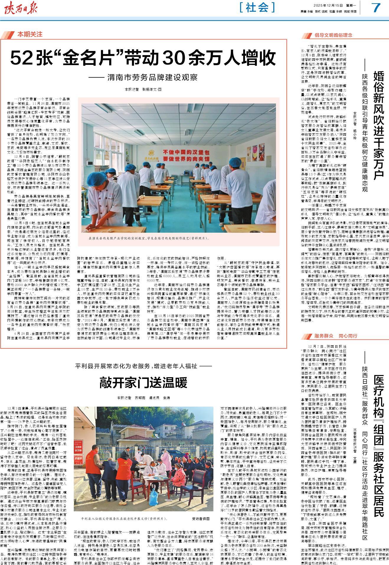 从“韩城家政师”守护民生幸福,到“大荔炉齿面餐饮师”传承烟火味道,再到“蒲城电商”“华山穿戴甲工艺师”拥抱新兴业态,渭南市已形成覆盖家政护理、银发产业、美食餐饮、非遗传承、新兴业态等多个领域的劳务品牌集群。
