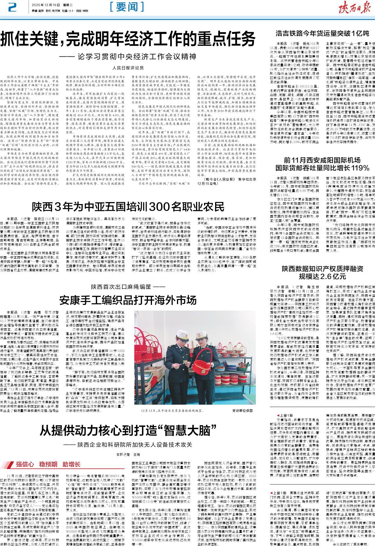 本报讯 (记者 陶玉琼 见习记者 李畅)12月11日,记者从陕西省知识产权局获悉:陕西数据知识产权金融服务日前实现重大突破——陕西建工材料设备物流集团有限公司以其核心数据知识产权“建筑行业招投标—商机智能推荐数据”获得融资1亿元;湖北省太和武当数字文化有限公司亦在陕完成登记与质押备案,其6件核心数据知识产权获贷1.6亿元。