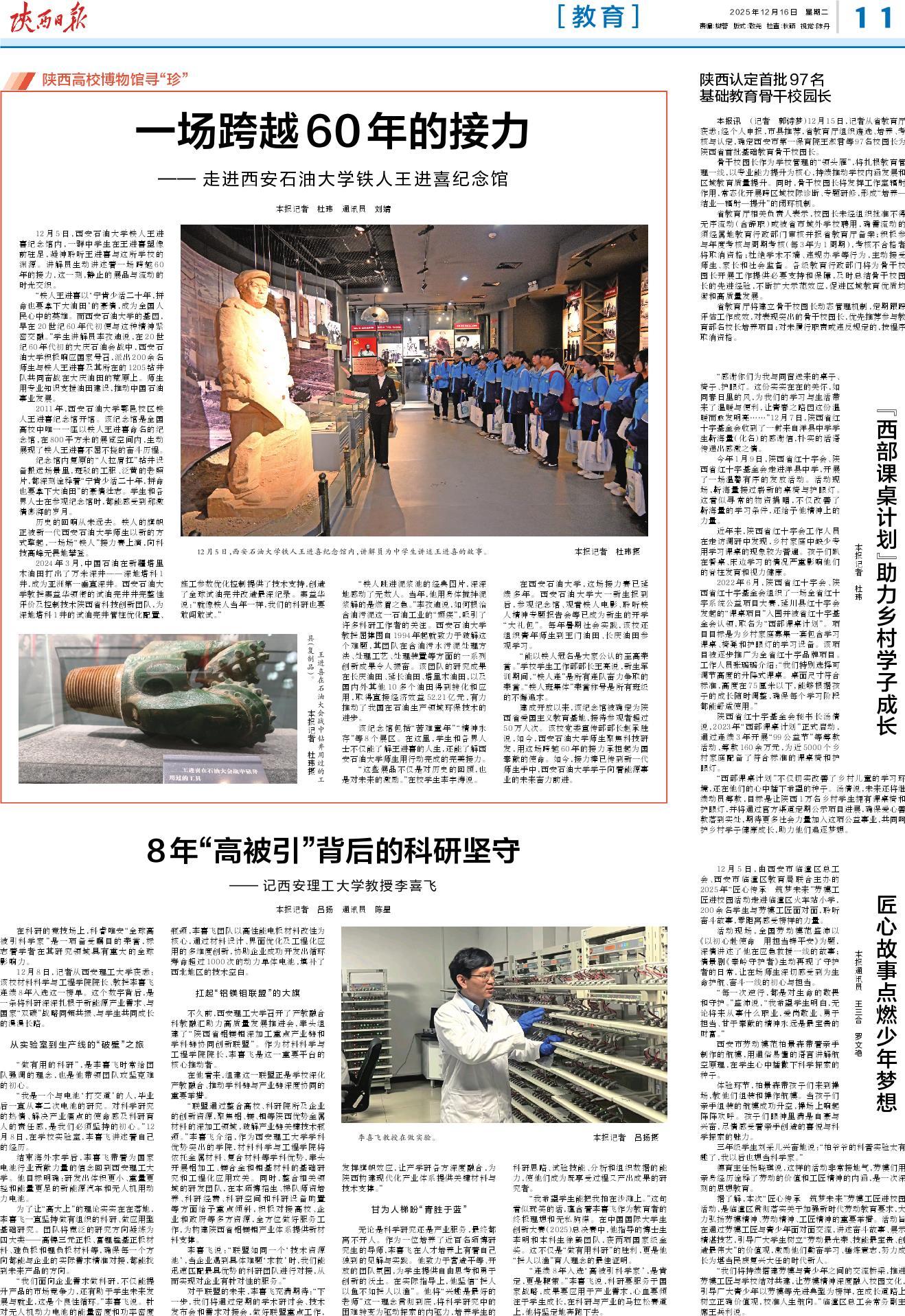 “我们面向企业需求做科研,不仅能提升产品的市场竞争力,还有助于学生未来发展与就业,这是个良性循环。”李喜飞说。针对无人机动力电池的能量密度和功率密度瓶颈,李喜飞团队以高性能电极材料改性为核心,通过材料设计、界面优化及工程化应用的多维度创新,协助企业成功开发出循环寿命超过1000次的动力单体电池,填补了西北地区的技术空白。
