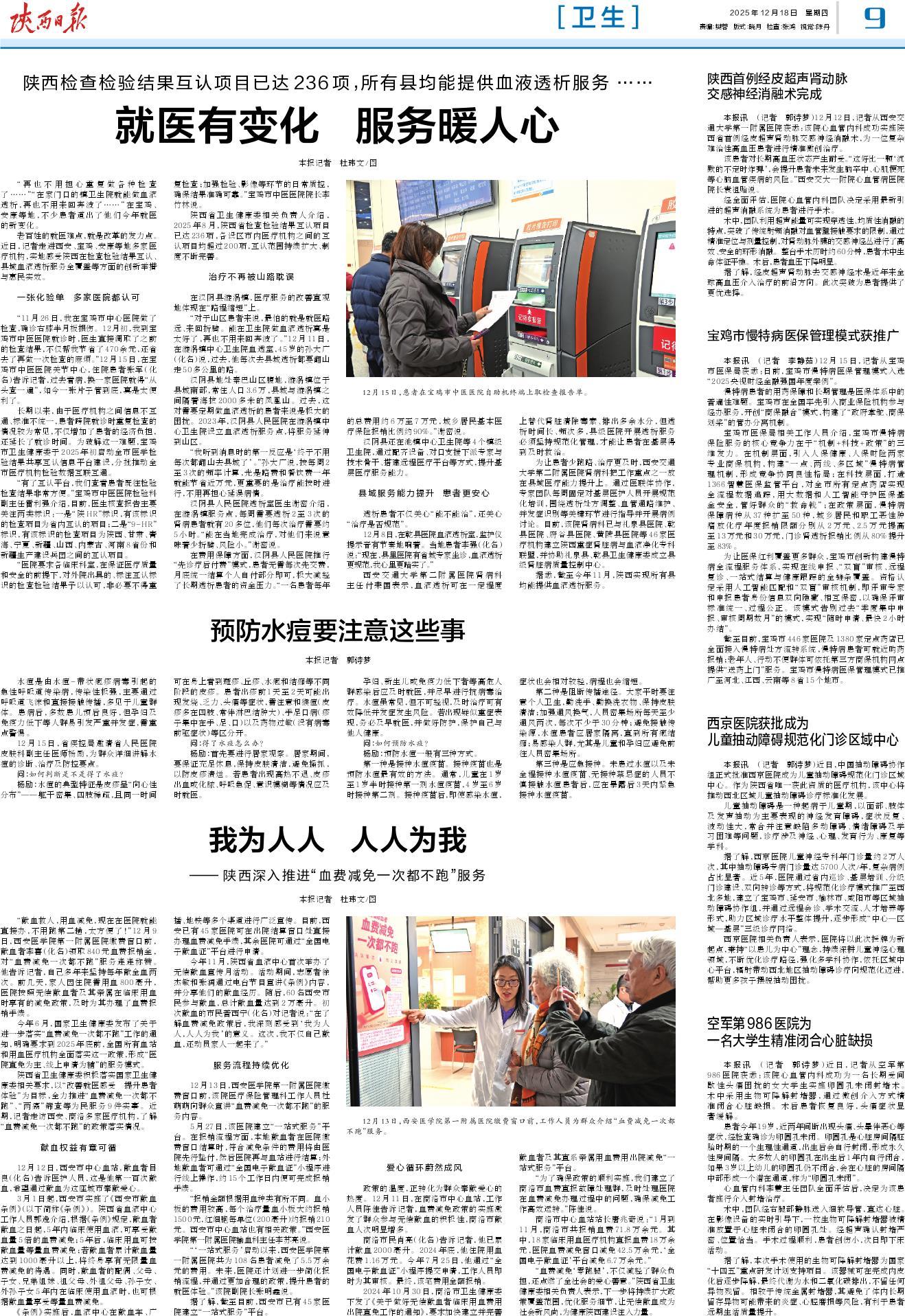 “再也不用担心重复做各种检查了……”“在家门口的镇卫生院就能做血液透析,再也不用来回奔波了……”在宝鸡、安康等地,不少患者道出了他们今年就医的新变化。