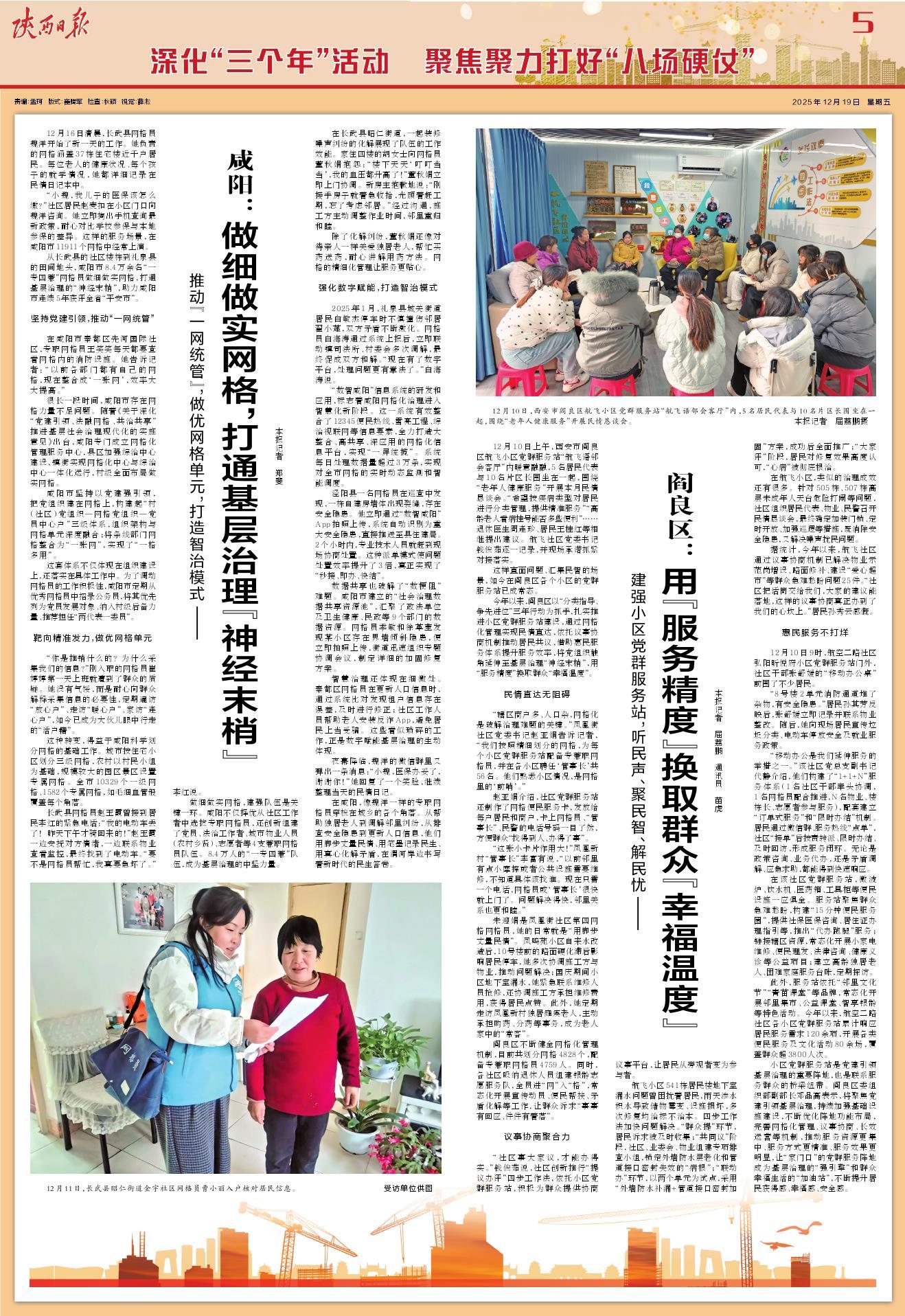 从长武县的社区楼栋到礼泉县的田间地头,咸阳市8.4万余名“一专四兼”网格员做细做实网格,打通基层治理的“神经末梢”,助力咸阳市连续5年获评全省“平安市”。