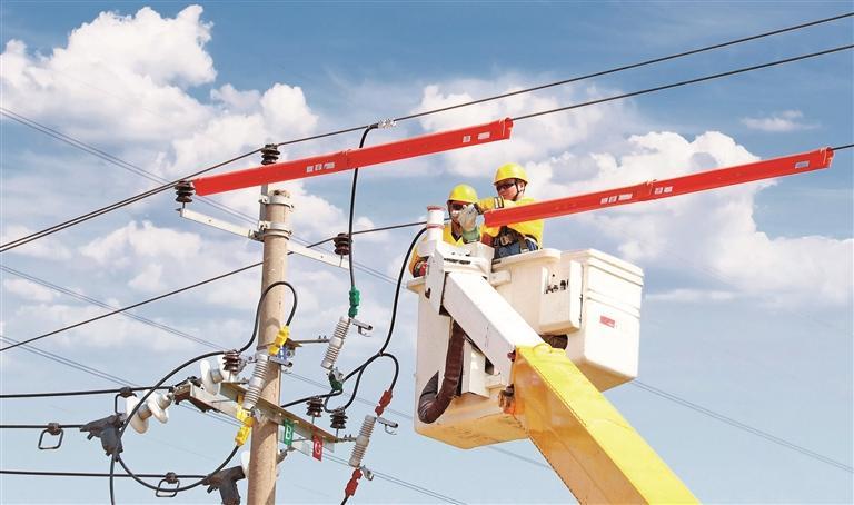 国网陕西电力工作人员开展配网线路带电作业。