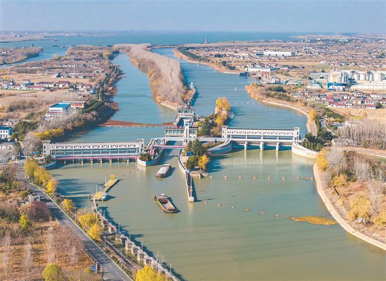 12月21日在江苏省扬州市江都区拍摄的南水北调东线一期工程运盐闸、邵仙套闸、邵仙闸洞。 新华社发(任飞摄)