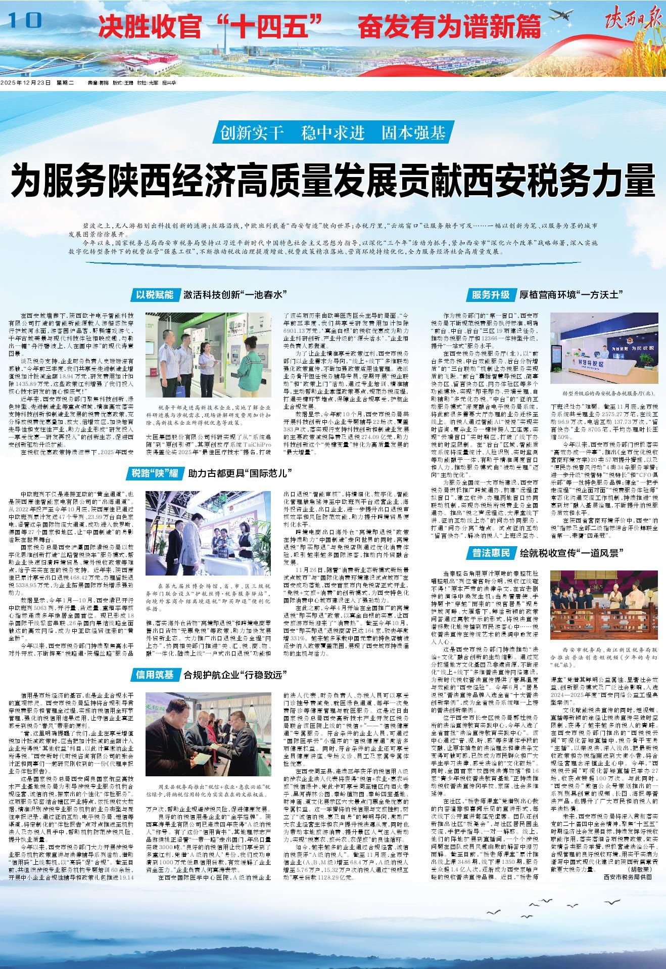 数据显示,今年前10个月,西安市税务局共开展科技创新中小企业专题辅导22场次、覆盖383户次,落实现行支持科技创新和制造业发展的主要政策减税降费及退税274.09亿元,助力科技创新这个“关键变量”转化为高质量发展的“最大增量”。