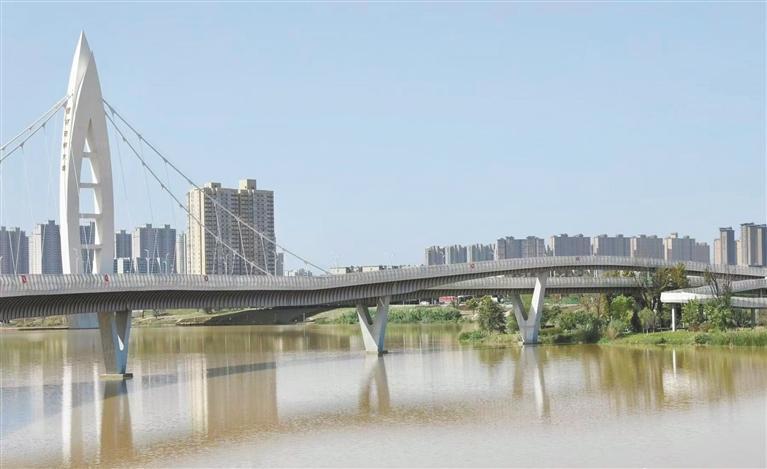 在宝鸡市金台区金陵河畔,河岸经过幸福河湖项目建设后焕然一新。平整的步道蜿蜒向前,宽敞的亲水平台整洁雅致,休闲长椅点缀其间,新建的人行桥与改造后的漫水桥让居民出行更加方便。