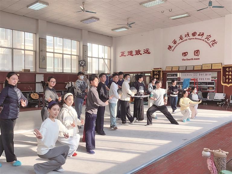 陕西省戏曲研究院排练厅里,青年演员在排练(12月18日摄)。