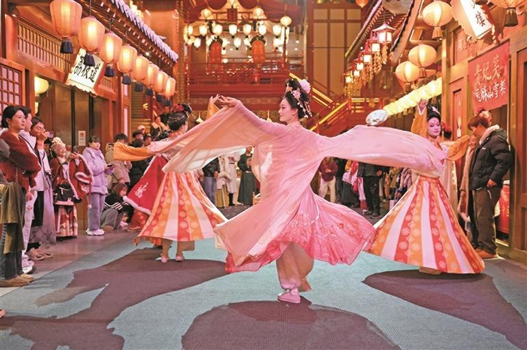 近期,经过焕新升级的西安长安十二时辰主题街区正式与游客见面。此次升级聚焦演艺、场景、互动等方面,进一步提升了街区的沉浸感、互动性与文化感染力,使游客在古城西安能够更具象地感受大唐风貌、领略大唐繁华。