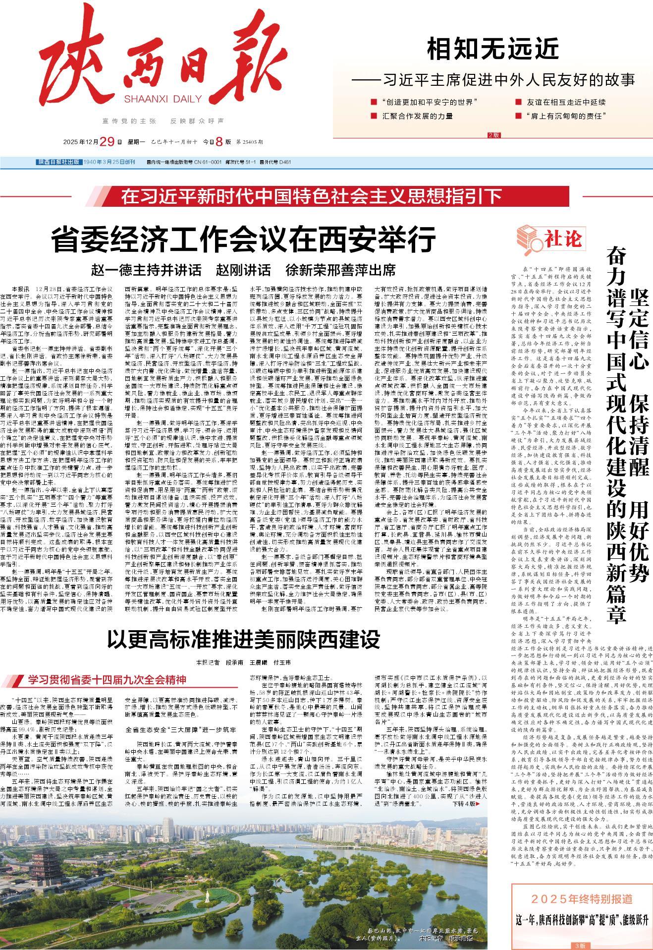 站在“十五五”开局的历史关口,陕西正坚定不移保持建设生态文明的战略定力,锲而不舍守牢美丽陕西建设安全底线,努力推动发展方式绿色低碳转型,为建设人与自然和谐共生的美丽中国贡献陕西力量。