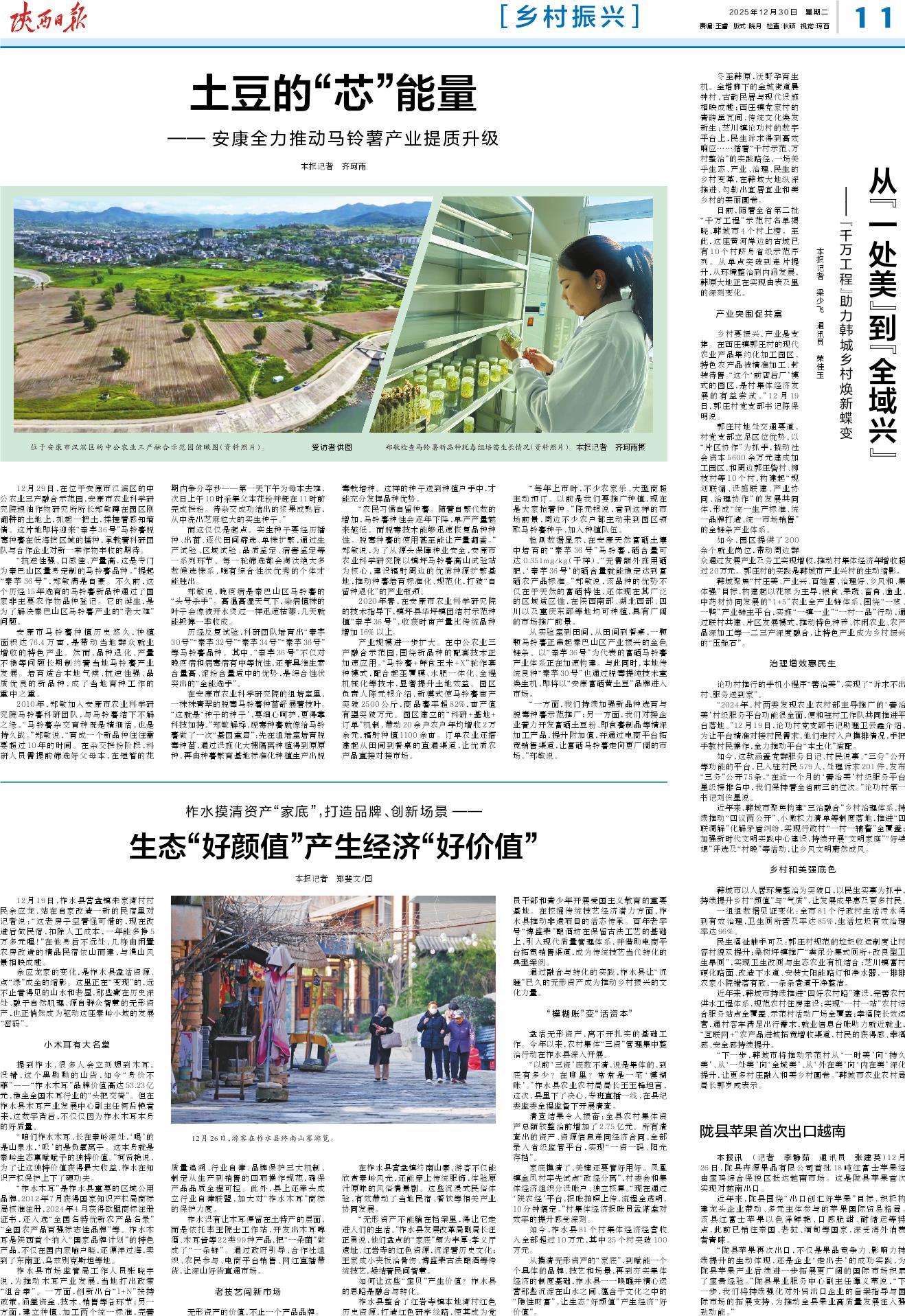 从实验室到田间,从田间到餐桌,一颗颗马铃薯正串起秦巴山区产业振兴的金色链条。以“秦芋36号”为代表的富硒马铃薯产业体系正在加速构建。与此同时,本地传统良种“秦芋30号”也通过脱毒提纯技术重焕生机,即将以“安康富硒黄土豆”品牌进入市场。