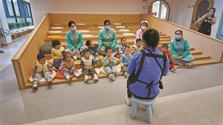 “现在,有了家门口的公办托育中心,孩子每天都主动拉着我出门,念叨着要找老师学儿歌。”朱世荣说,除了距离近,专业照护更让她安心,“这里的育儿师都经过系统培训,抚触、拍嗝的手法熟练又轻柔,对孩子有耐心。”