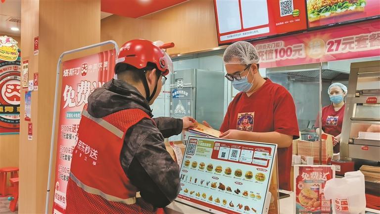 12月22日,石泉县外卖员在取餐时,给商户送上“普法礼包”。 本报通讯员 许兵摄