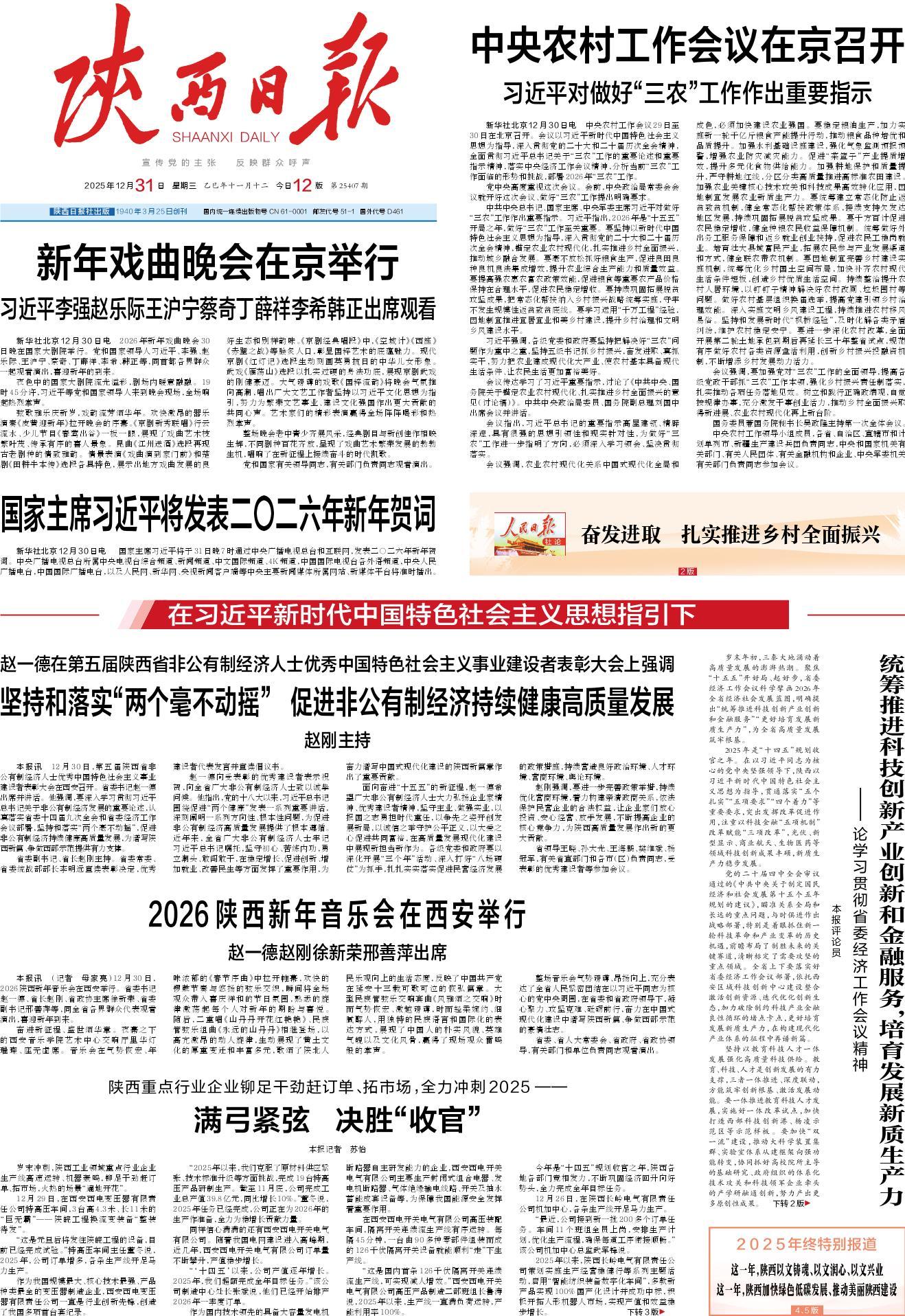 面向奋进“十五五”的新征程,赵一德希望广大非公有制经济人士大力弘扬企业家精神、优秀建设者精神,坚守主业、做强实业,以报国之志勇担时代重任,以争先之姿开创发展新局,以诚信之举守护公平正义,以大爱之心促进共同富裕,在高质量发展现代化建设中展现新担当新作为。各级党委和政府要以深化开展“三个年”活动、深入打好“八场硬仗”为抓手,扎扎实实落实促进民营经济发展的政策措施,持续营造良好政治环境、人才环境、营商环境、舆论环境。