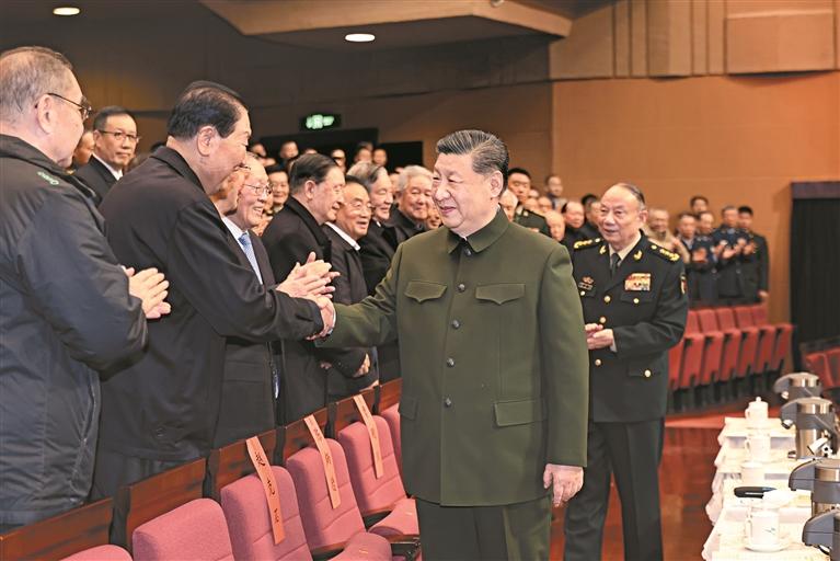下午4时许,习近平来到老同志中间,全场响起热烈掌声。习近平同大家亲切交流、互致问候,关切询问他们的身体和生活情况,共同回顾过去一年党、国家和军队事业走过的不平凡历程、取得的重大成就。老同志们一致表示,要更加紧密地团结在以习近平同志为核心的党中央周围,坚持以习近平新时代中国特色社会主义思想为指导,深入贯彻习近平强军思想,深刻领悟“两个确立”的决定性意义,坚决做到“两个维护”,贯彻军委主席负责制,弘扬光荣传统、永葆政治本色,坚定信念、勇毅前行,为如期实现建军一百年奋斗目标、高质量推进国防和军队现代化作贡献。