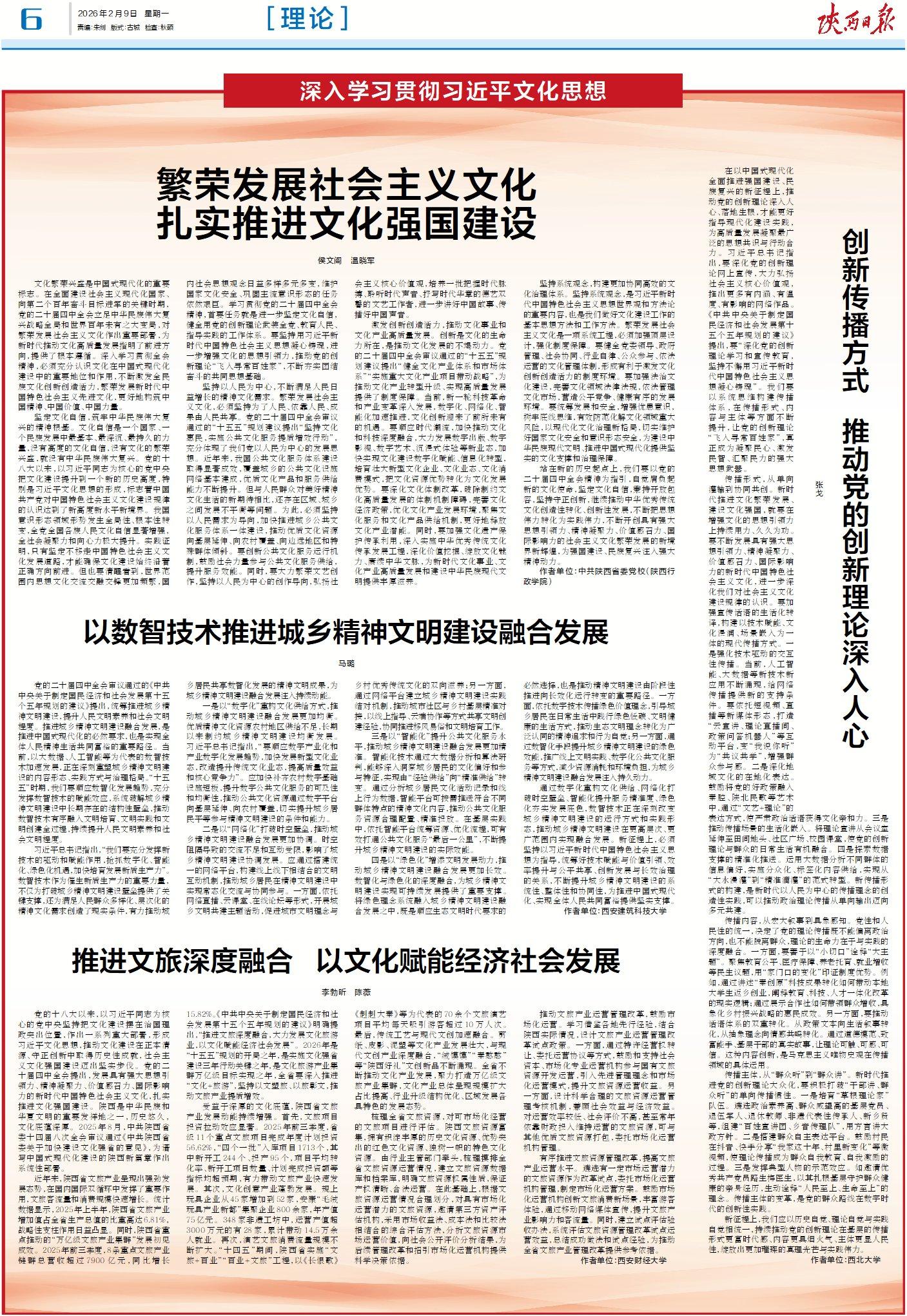 党的十八大以来,以习近平同志为核心的党中央坚持把文化建设摆在治国理政突出位置,作出一系列重大部署,形成习近平文化思想,推动文化建设在正本清源、守正创新中取得历史性成就,社会主义文化强国建设迈出坚实步伐。党的二十届四中全会提出,发展具有强大思想引领力、精神凝聚力、价值感召力、国际影响力的新时代中国特色社会主义文化,扎实推进文化强国建设。陕西是中华民族和华夏文明的重要发祥地之一,历史悠久,文化底蕴深厚。2025年8月,中共陕西省委十四届八次全会审议通过《中共陕西省委关于加快建设文化强省的意见》,为谱写中国式现代化建设的陕西新篇章作出系统性部署。