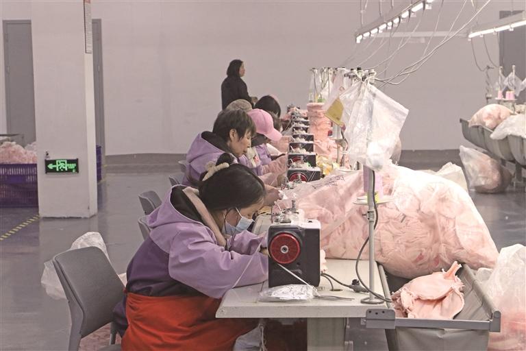 1月29日,安康极盛潮品玩具有限公司工作人员在生产毛绒玩具。 本报记者 董剑南摄