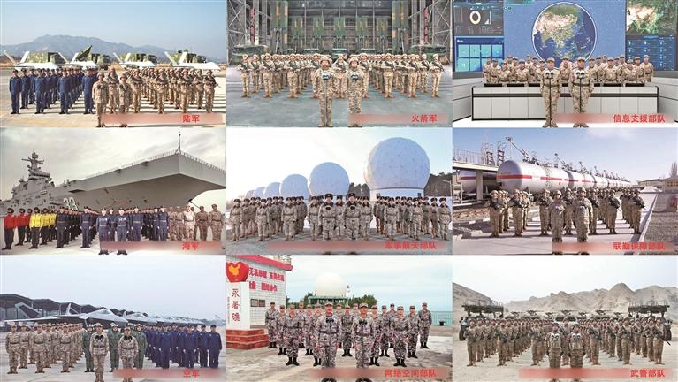 下午4时许,习近平来到八一大楼,同来自各军兵种和武警部队的9个单位视频通话。陆军某旅2营、海军安徽舰、空军航空兵某旅、火箭军某旅、军事航天部队某部、网络空间部队某部、信息支援部队某中心、联勤保障部队某仓库、武警部队某支队,依次向习主席报告战备值班和执行任务情况。习近平认真听取汇报,同他们亲切交流。看到官兵精神饱满、士气高昂,在各自岗位上扎实练兵备战,习近平给予充分肯定,勉励大家狠抓实战化练兵,用好手中武器装备,提高部队战斗力建设和运用水平。