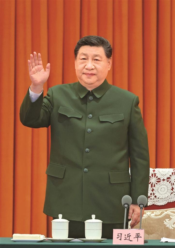 2月10日,中共中央总书记、国家主席、中央军委主席习近平在北京八一大楼以视频方式检查全军战备值班和执行任务情况,亲切慰问有关部队,代表党中央和中央军委,向全体人民解放军指战员、武警部队官兵、军队文职人员、预备役人员和民兵致以诚挚问候和新春祝福。这是习近平向官兵挥手致意。 新华社记者 李刚摄