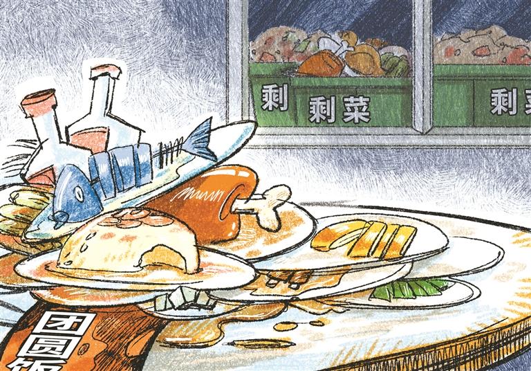 一年一度的新春佳节,在于欢聚与团圆。因此,亲友欢聚时,应弘扬勤俭节约的传统美德,让春节回归团圆本真,避免“盛宴”变“剩”宴。 田芳昕作