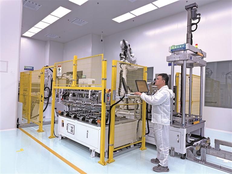 旭氢时代工作人员在氢燃料电池堆全自动化生产线上操作(资料照片)。 受访者供图
