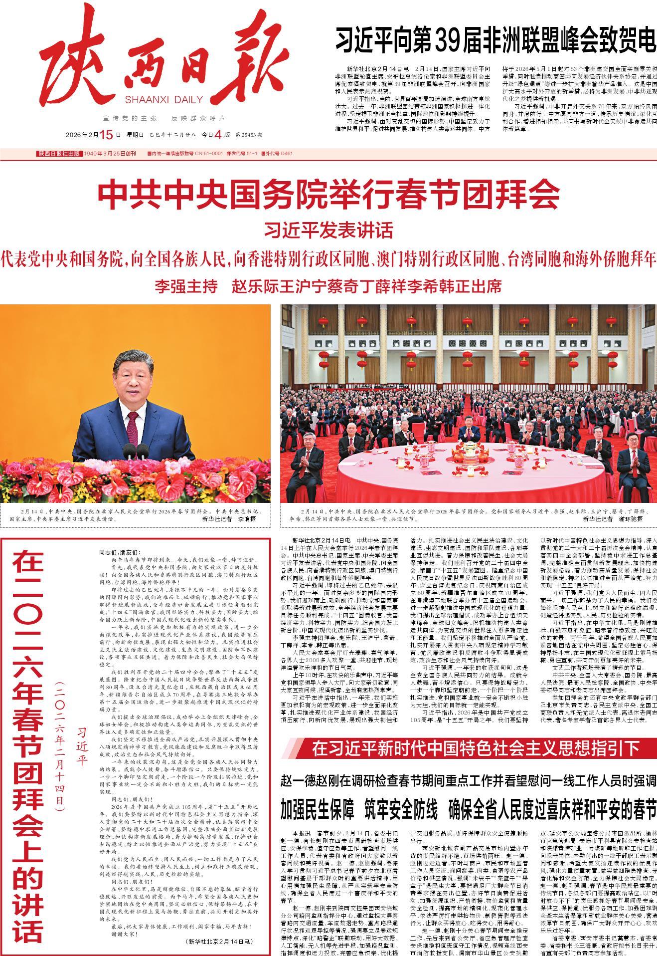 首先,我代表党中央和国务院,向大家致以节日的美好祝福!向全国各族人民和香港特别行政区同胞、澳门特别行政区同胞、台湾同胞、海外侨胞拜年!
