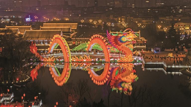 科技的加持,让传统年俗焕发新活力。大唐芙蓉园“长安灯会”上,数字猜灯谜、云端逛灯会也颇受年轻人青睐。