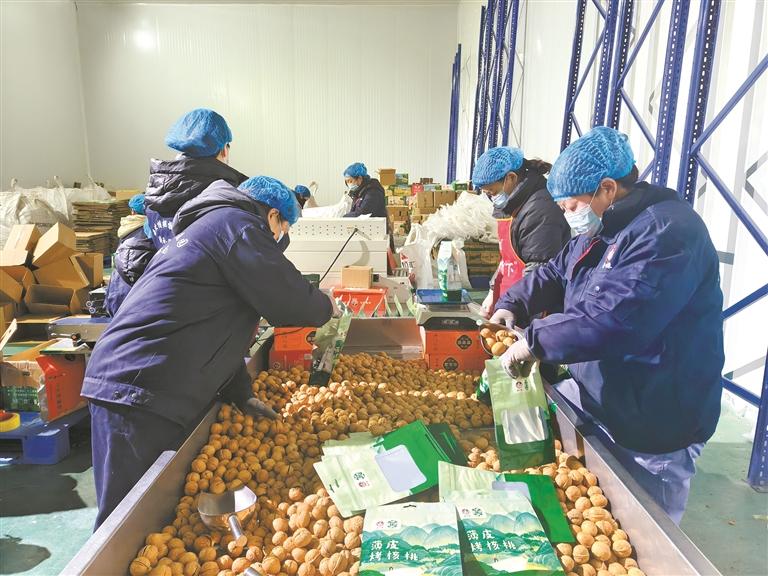 “依托西北核桃物流园,洛南县引进6家年产值亿元以上的加工企业、16家仓储企业和5家电商企业,收购、加工当地以及新疆、云南、甘肃等地的优良核桃,并将产品销往全国以及欧美市场,逐步形成了‘买全国卖全球’的交易格局。”陕西西北核桃交易中心有限责任公司负责人王际锋说。