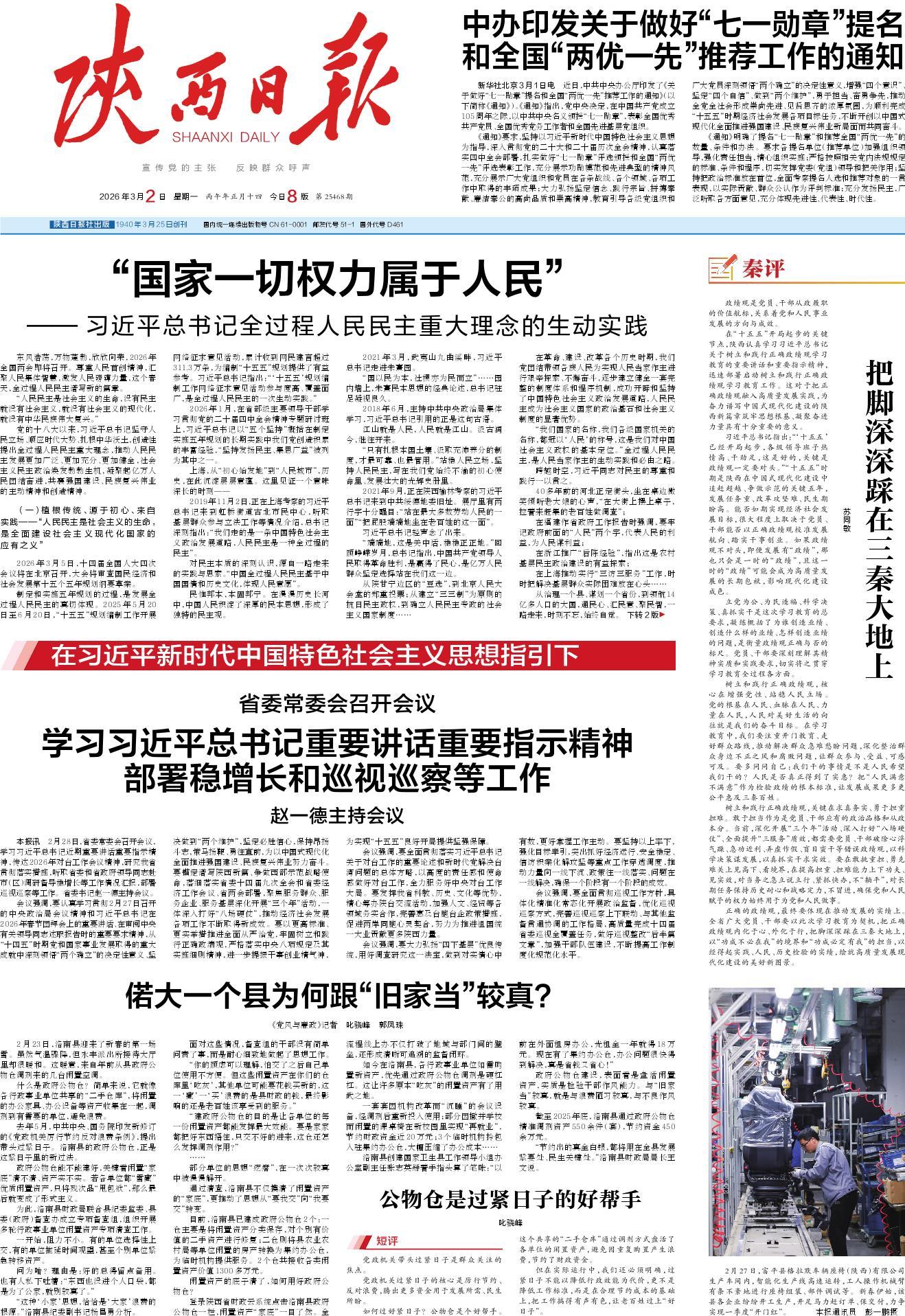 会议强调,要认真学习贯彻2月27日召开的中央政治局会议精神和习近平总书记在2026年春节团拜会上的重要讲话、在审阅中央有关领导同志述职报告时的重要要求精神,从“十四五”时期党和国家事业发展取得的重大成就中深刻领悟“两个确立”的决定性意义、坚决做到“两个维护”,坚定必胜信心,保持昂扬斗志,策马扬鞭、勇往直前,为以中国式现代化全面推进强国建设、民族复兴伟业努力奋斗。要锚定谱写陕西新篇、争做西部示范战略使命,落细落实省委十四届九次全会和省委经济工作会议、省两会部署,聚焦服务群众、服务企业、服务基层深化开展“三个年”活动,一体深入打好“八场硬仗”,推动经济社会发展各项工作不断取得新成效。要以更高标准、更实举措推进全面从严治党,牢固树立和践行正确政绩观,严格落实中央八项规定及其实施细则精神,进一步提振干事创业精气神,为实现“十五五”良好开局提供坚强保障。