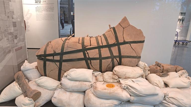 展厅里还有一件特殊的文物——一匹已经完成清理、正在等待修复的陶马,被特意保留在“暂停状态”展出。“我们也想展示文物保护修复的过程,而不仅仅是结果。”彭文说。