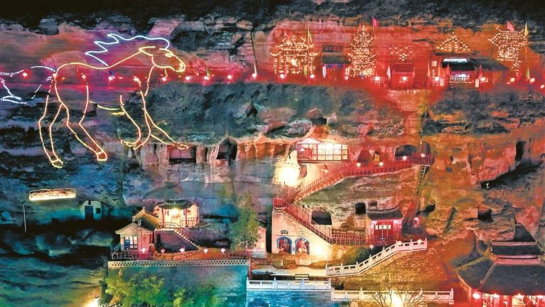 正月十三起,游客除了欣赏千盏油灯在崖壁间点亮的奇观外,还能参与无人机表演秀等科技感十足的互动。此外,花果山文艺路演、秦腔展演、豳风集市等活动同步展开,为春节增添浓厚的节日氛围。