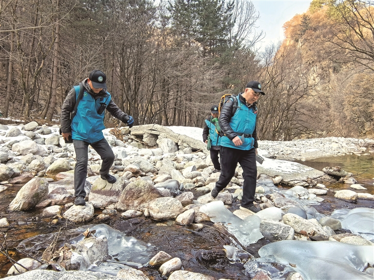 2月27日,西安市长安区南五台国有生态林场护林员进山巡查。