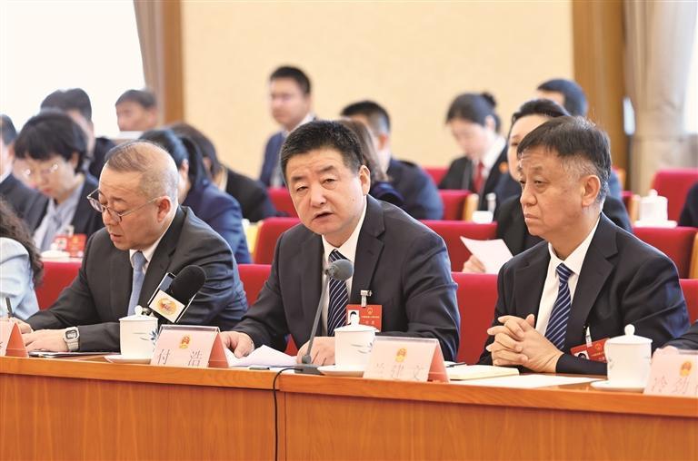 3月11日上午,在十四届全国人大四次会议陕西代表团全体会议上,代表们围绕全国人大常委会工作报告和“两高”工作报告内容,结合发展实际和民生关切踊跃发言,谈认识、提建议、谋落实。图为付浩代表发言。本报记者 母家亮摄