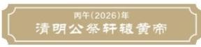 丙午(2026)年清明公祭轩辕黄帝典礼由陕西省人民政府、国务院台办、国务院侨办、中国侨联共同主办,以“铸牢中华民族共同体意识 奋进中国式现代化新征程”为主题,按照清明公祭典礼组织规范,共有击鼓鸣钟、唱黄帝颂、敬献花篮、恭读祭文、行三鞠躬礼、乐舞告祭、龙飞中华、瞻仰轩辕殿和拜谒黄帝陵、种植桥山柏9项仪程。目前,各项筹备工作扎实有序推进。