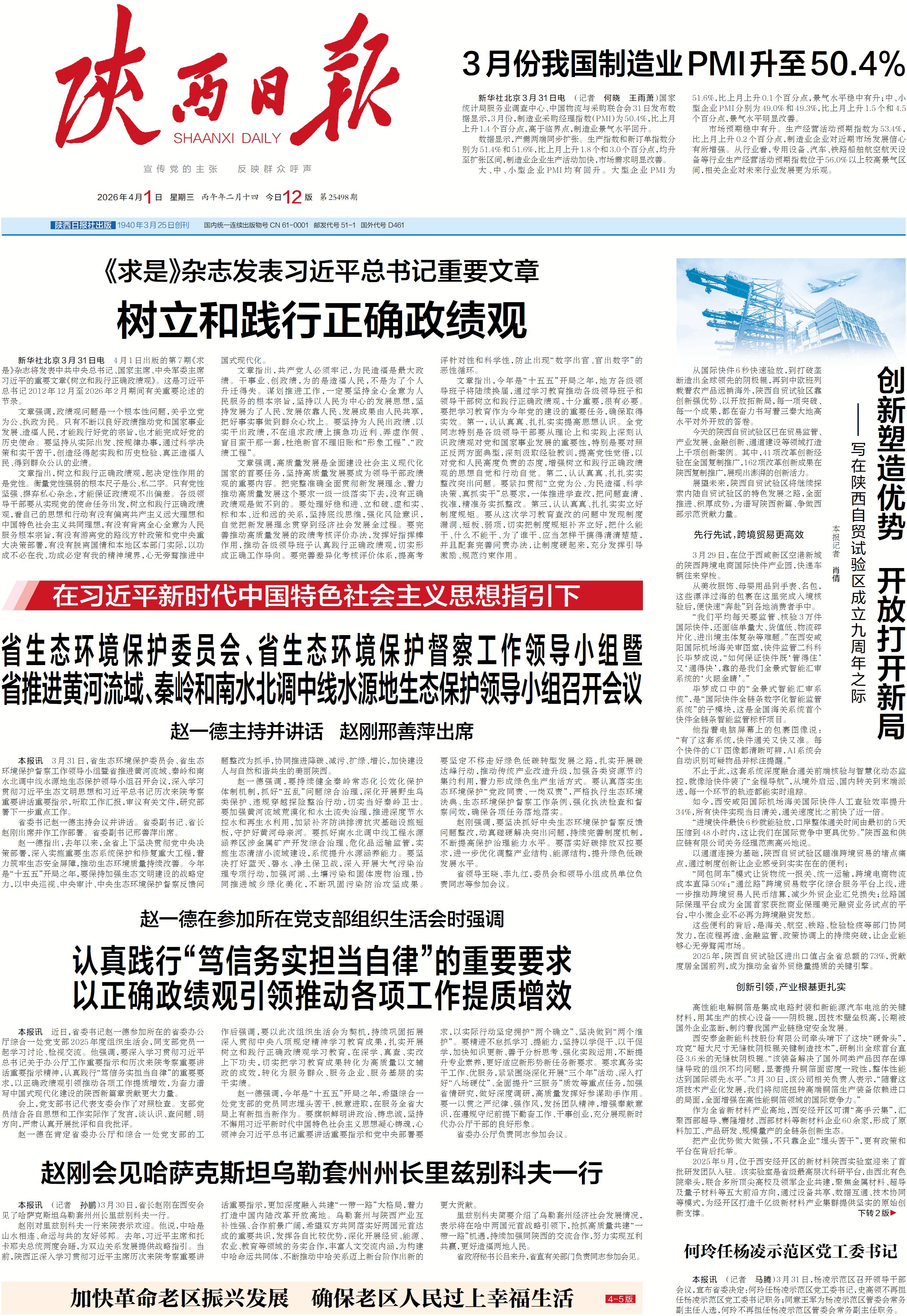 赵一德指出,去年以来,全省上下坚决贯彻党中央决策部署,深入实施重要生态系统保护和修复重大工程,着力筑牢生态安全屏障,推动生态环境质量持续改善。今年是“十五五”开局之年,要保持加强生态文明建设的战略定力,以中央巡视、中央审计、中央生态环境保护督察反馈问题整改为抓手,协同推进降碳、减污、扩绿、增长,加快建设人与自然和谐共生的美丽陕西。
