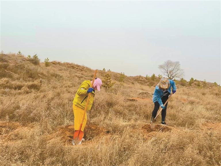 “红柳耐盐碱、根系发达,在这片盐碱地上,它就像‘先锋’。”定边县林业局副局长王一为说,“我们模拟自然的演替规律,通过合理搭配乔灌草,让林子形成稳定的生态群落。每一棵树都不是孤立的,乔灌草交织成网,才能把沙牢牢锁住,把水源稳稳保住。”作为定边生态治理的一块“硬骨头”,白于山区既是生态脆弱区,也是必须守住的“生命线”。这里是黄河“几字弯”攻坚战的重要源头治理区,无定河、北洛河等多条黄河支流从这里发源。多年来,当地探索了一套精准高效的治理路径:坚持“适地适树”,让油松、柠条等乡土树种扎下根;推广反坡梯田、鱼鳞坑整地,为树木蓄住雨水;配套软体水窖、光伏提水设施,提高树木成活率。造林工人在坡度超过25度的山梁上,施用生根粉和保水剂栽植油松,之后,再为每棵油松覆膜保墒。正是这环环相扣的配合,才让苗木在年降水量不足400毫米的干旱环境中扎下根来。