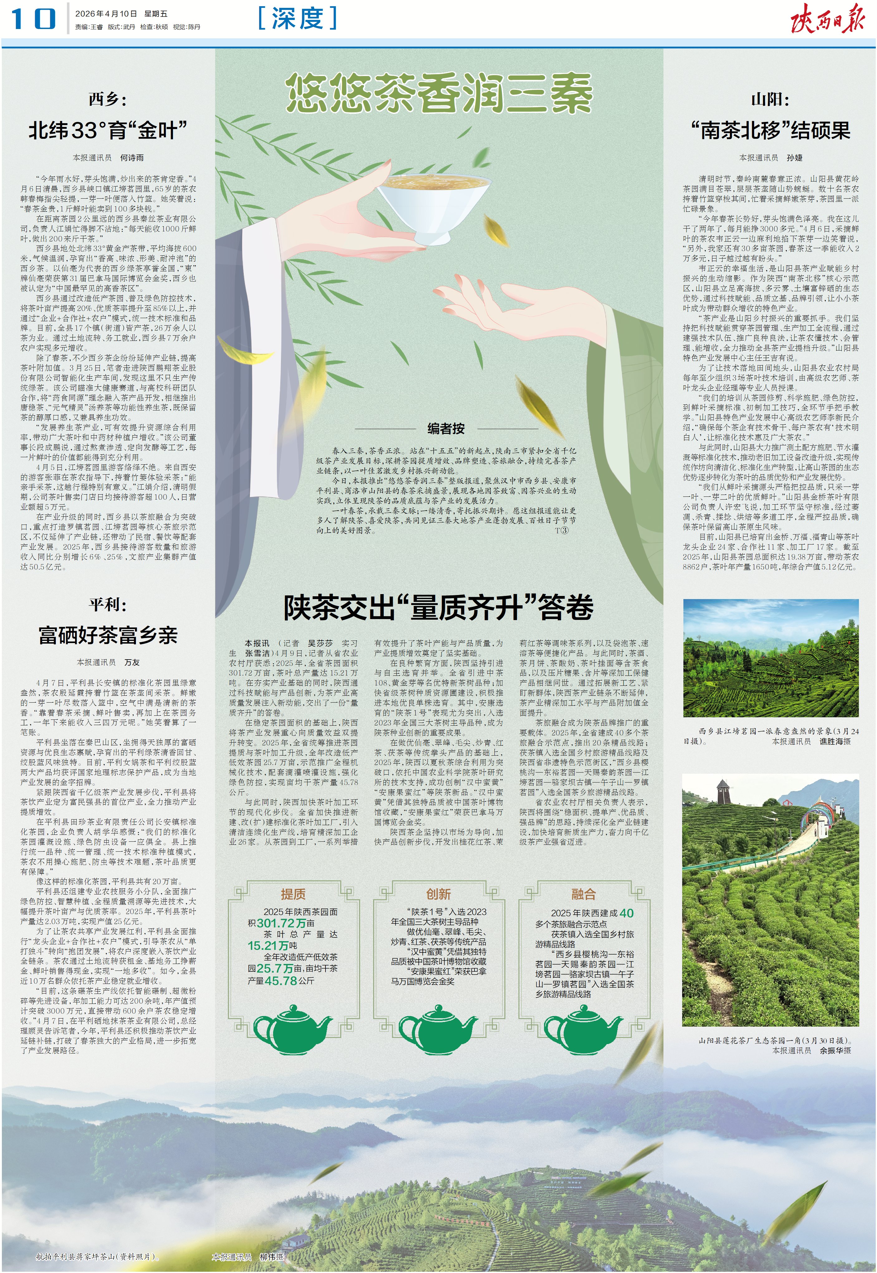 西乡县通过改造低产茶园、普及绿色防控技术,将茶叶亩产提高20%、优质茶率提升至85%以上,并通过“企业+合作社+农户”模式,统一技术标准和品牌。目前,全县17个镇(街道)皆产茶,26万余人以茶为业。通过土地流转、务工就业,西乡县7万余户农户实现多元增收。