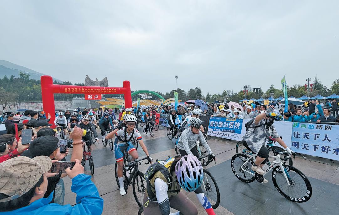 4月11日,汉中市第七届不间断骑行200公里挑战赛在南郑区汉山广场鸣笛发车。来自20多个省(区、市)的数百名骑友参与。 本报记者 张江舟摄