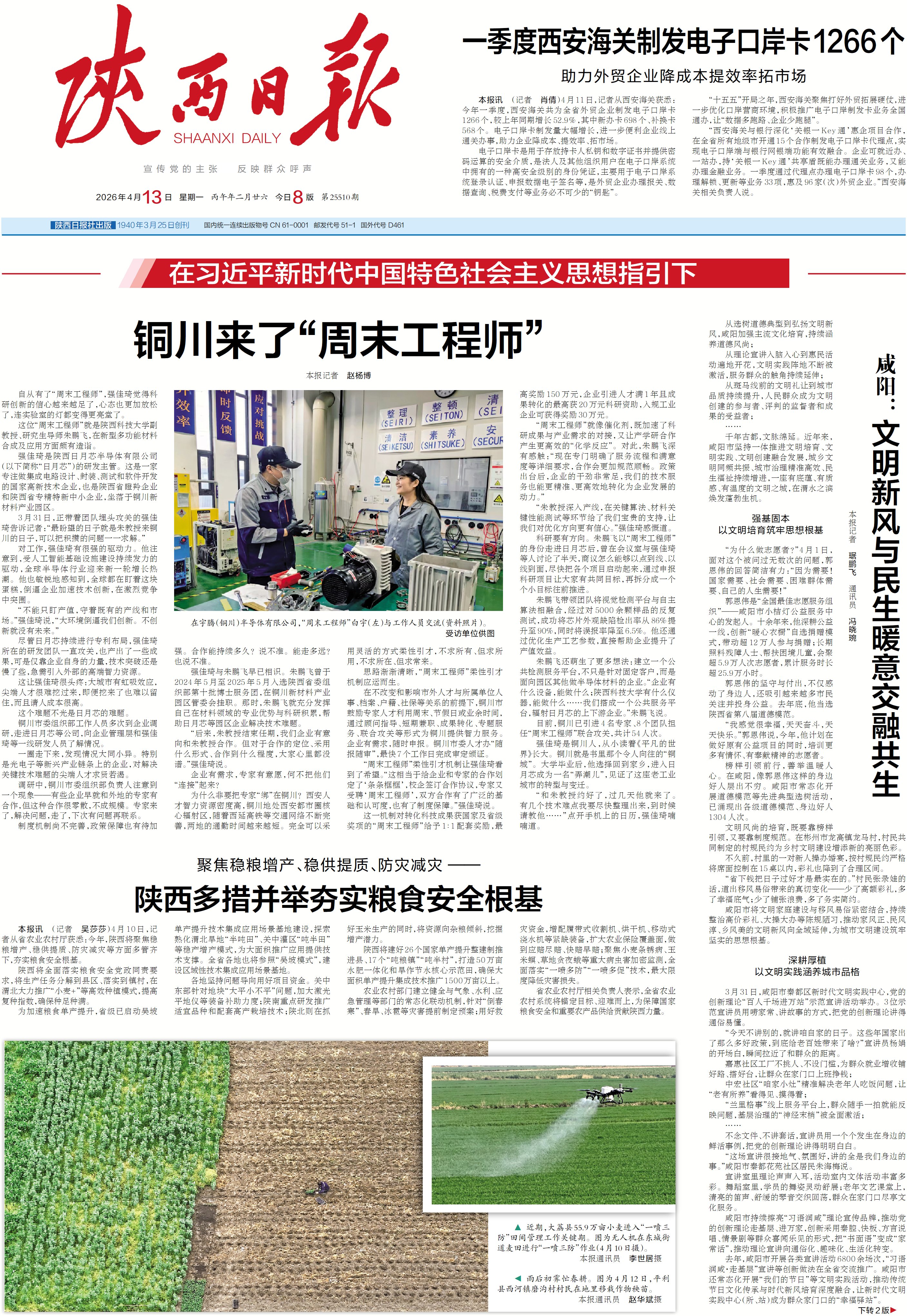 本报讯 (记者 吴莎莎)4月10日,记者从省农业农村厅获悉:今年,陕西将聚焦稳粮增产、稳供提质、防灾减灾等方面多管齐下,夯实粮食安全根基。