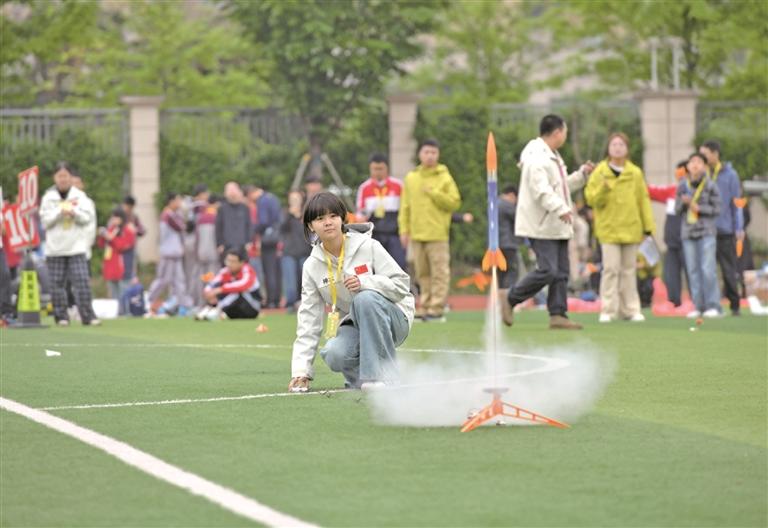 4月12日,为期两天的2026年陕西省“汉风花海·逐梦蓝天”青少年航空航天模型大赛在汉中市汉台区圆满收官。来自全省各地的890名青少年共赴蓝天之约。图为选手参加火箭伞降项目角逐。
