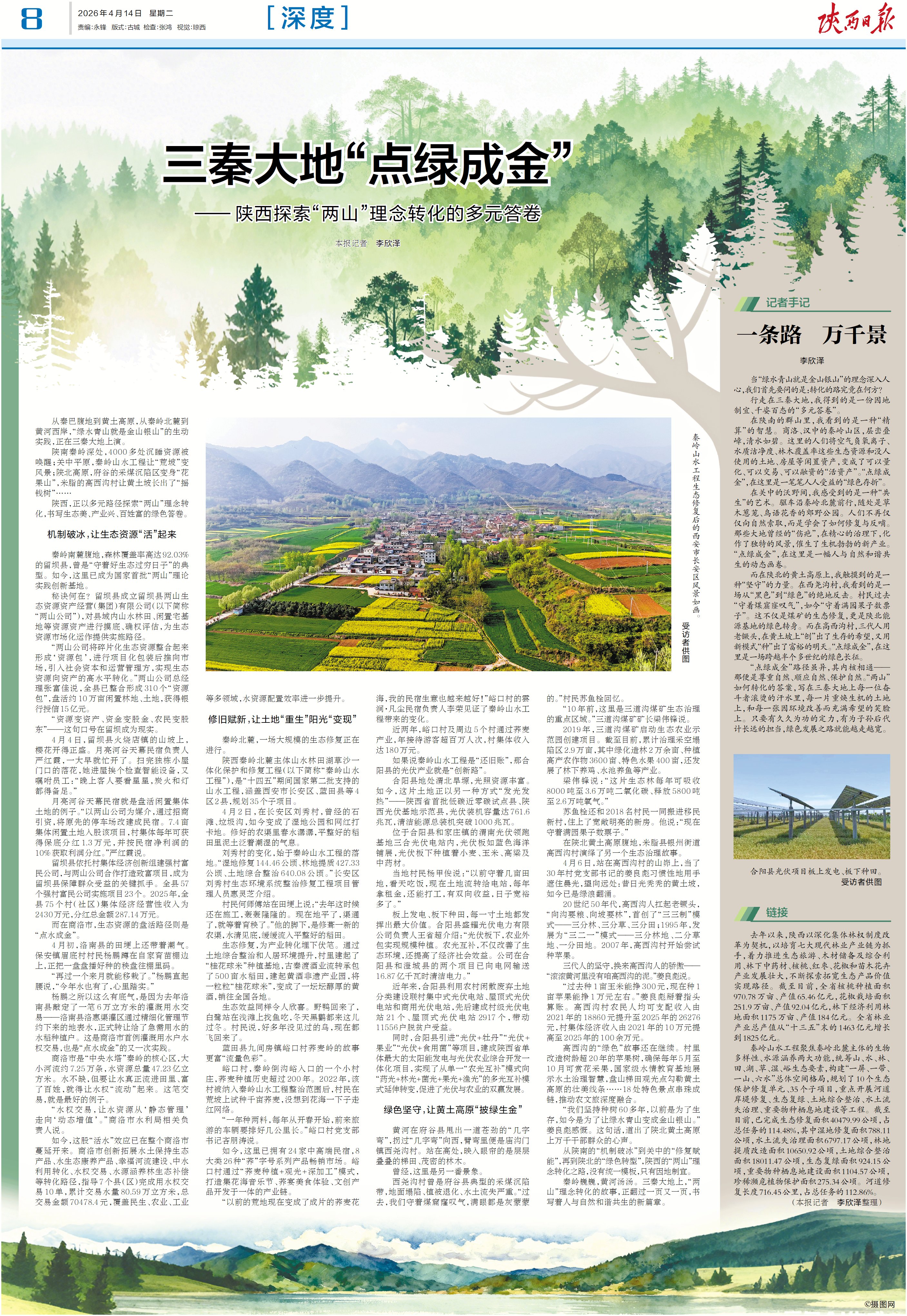 秦岭巍巍,黄河汤汤。三秦大地上,“两山”理念转化的故事,正翻过一页又一页,书写着人与自然和谐共生的新篇章。