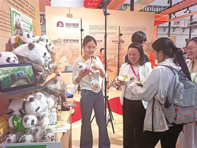 同样想拓展市场的,还有“秦憨憨”展台的参展商杨东东。他说:“去年,在日本大阪世博会,我们带去的大熊猫玩偶被抢购一空。当前,我们正与西安的‘易点天下’合作,打算通过跨境电商出海。”