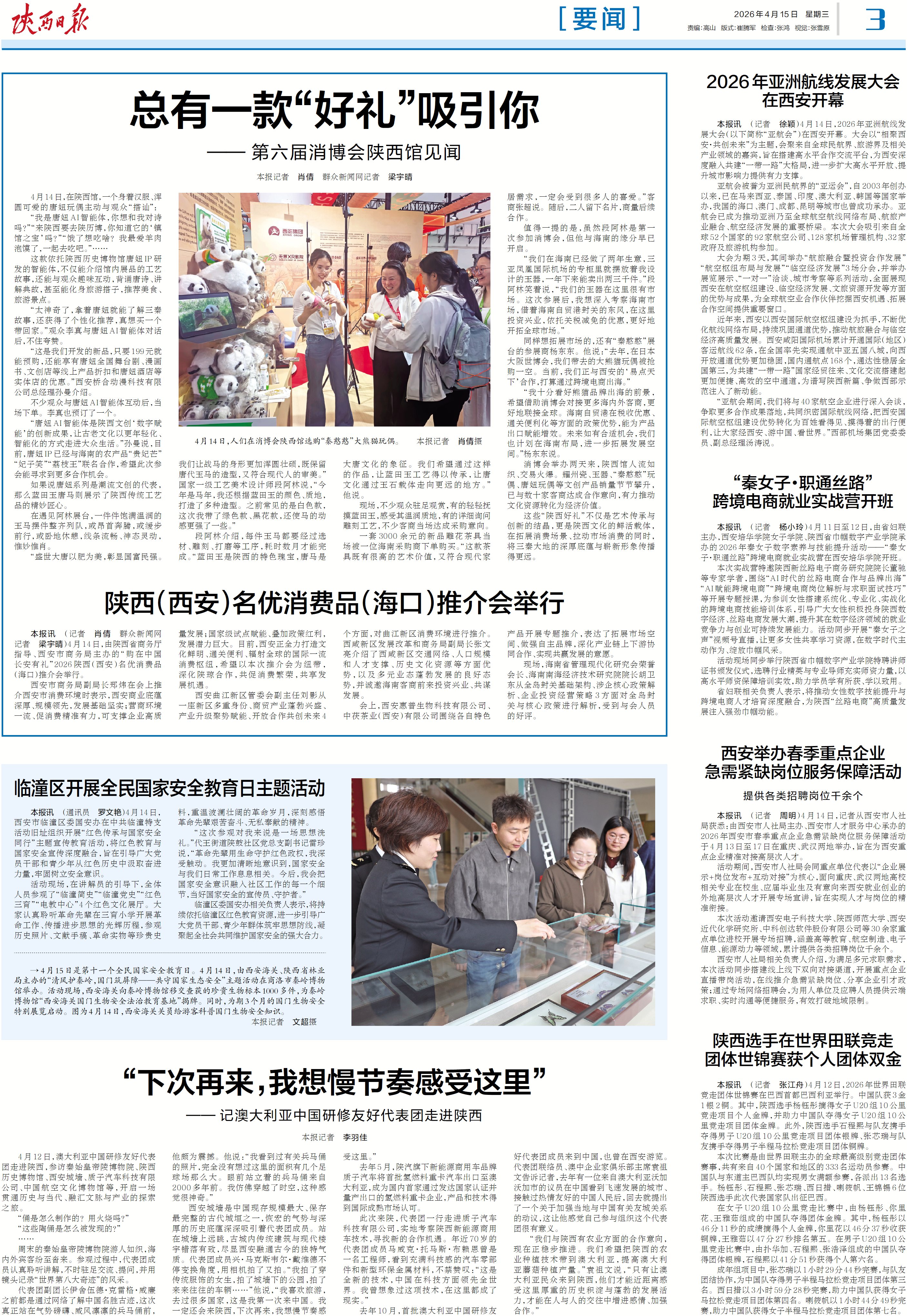 本报讯 (记者 徐颖)4月14日,2026年亚洲航线发展大会(以下简称“亚航会”)在西安开幕。大会以“相聚西安·共创未来”为主题,会聚来自全球民航界、旅游界及相关产业领域的嘉宾,旨在搭建高水平合作交流平台,为西安深度融入共建“一带一路”大格局,进一步扩大高水平开放、提升城市影响力提供有力支撑。