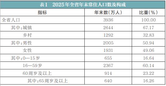 年末全省常住人口3936万人,比上年末减少17万人,其中城镇人口2644万人。全年出生人口23万人,出生率为5.83‰;死亡人口33万人,死亡率为8.37‰;自然增长率为-2.54‰。