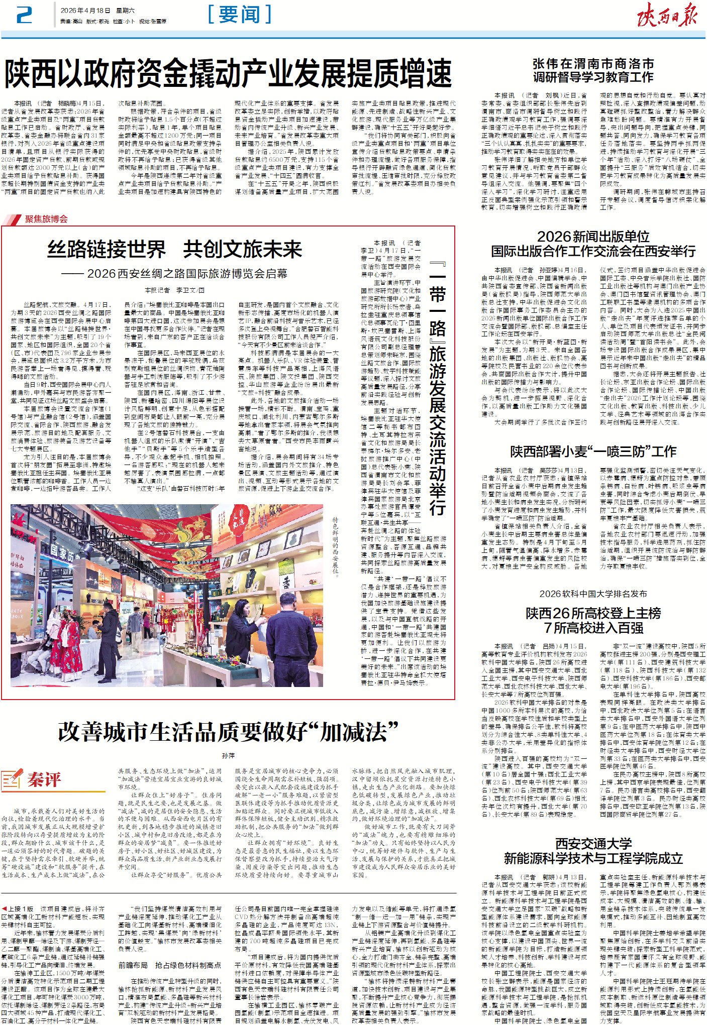 在“十五五”开局之年,陕西积极谋划储备高质量产业项目,扩大范围实施产业类项目贴息政策,推进现代能源、先进制造、战略性新兴产业、文化旅游、现代服务业等万亿级产业集群建设,确保“十五五”开好局起好步。