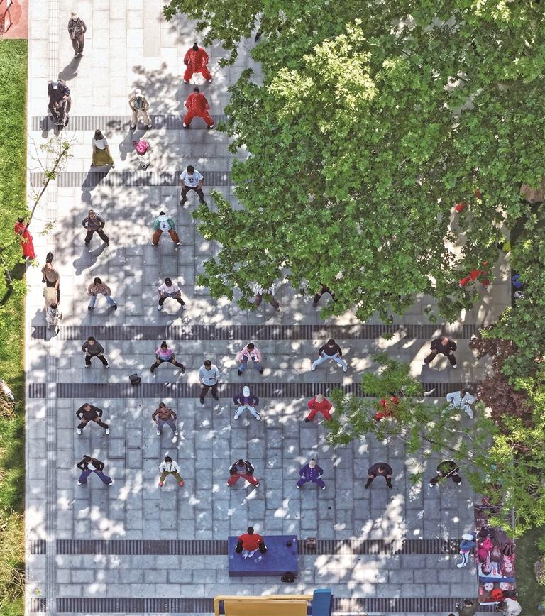 4月18日,在位于西安城市运动公园的全民健身科学指导站,国家级社会体育指导员蒲屹指导群众做八段锦。 本报记者 王熙摄
