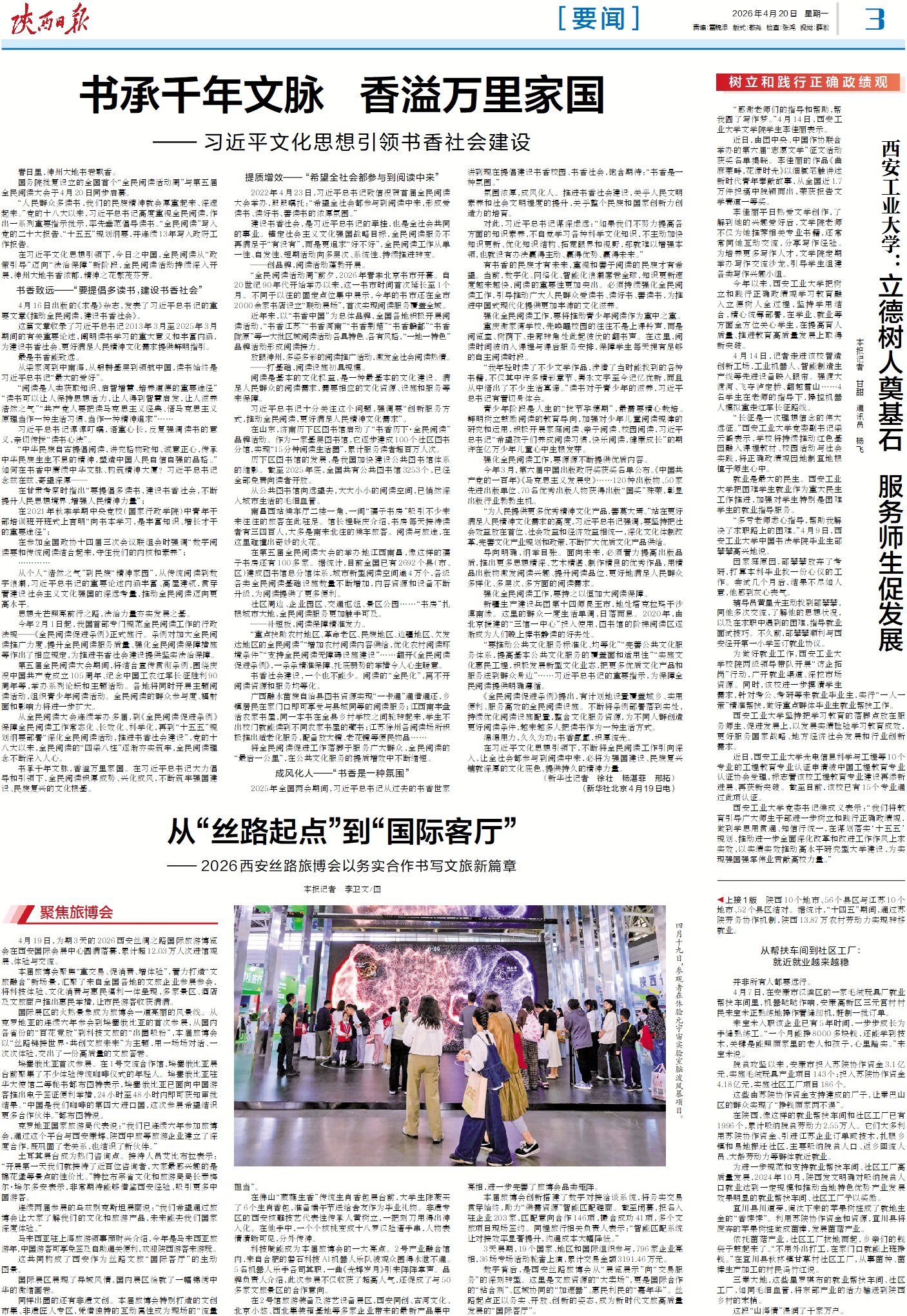 4月19日,为期3天的2026西安丝绸之路国际旅游博览会在西安国际会展中心圆满落幕,累计超12.03万人次进馆观展、体验与交流。