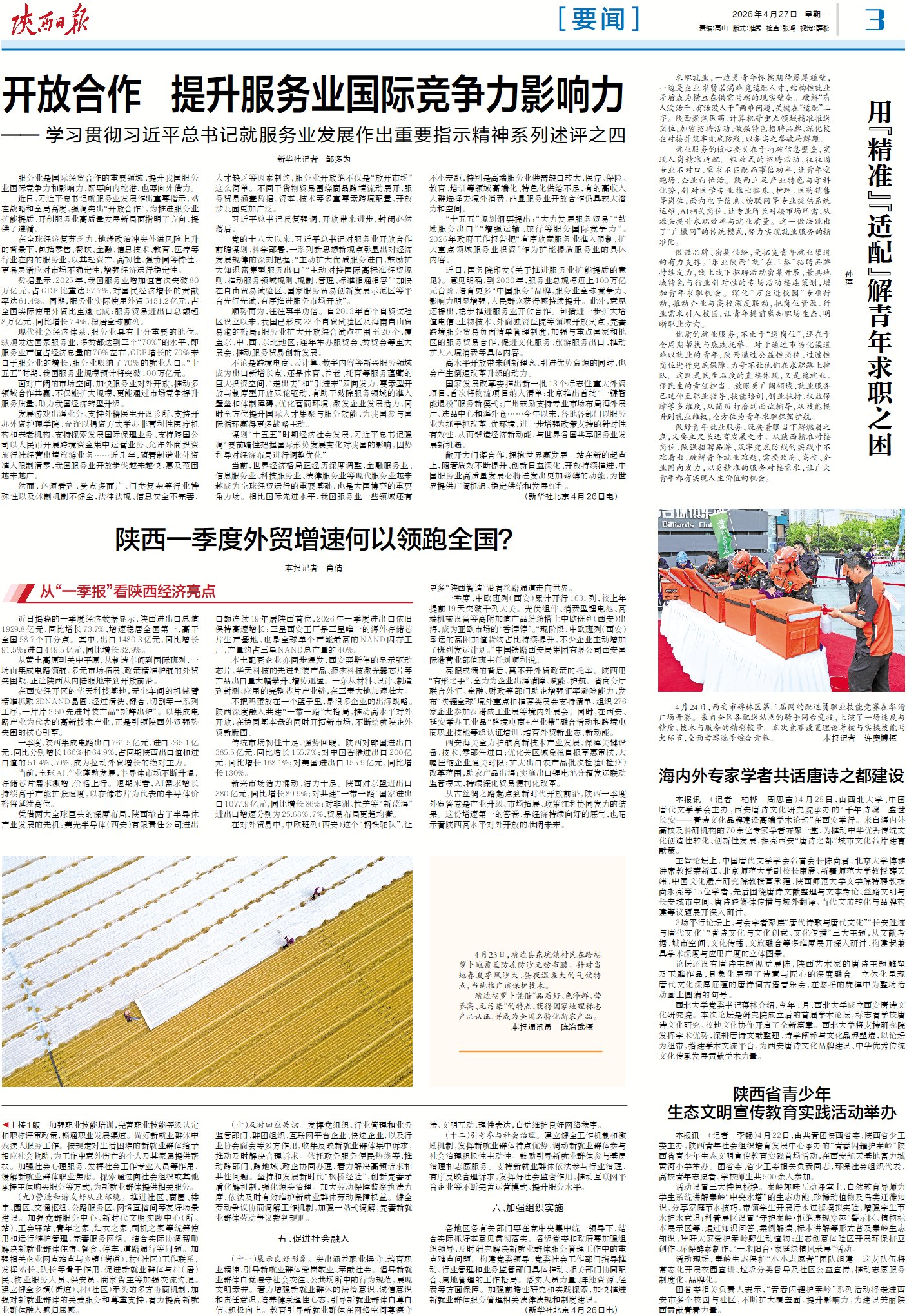 从古丝绸之路起点到新时代开放前沿,陕西一季度外贸答卷是产业升级、市场拓展、政策红利协同发力的结果。这份增速第一的答卷,是经济持续向好的底气,也昭示着陕西高水平对外开放的壮阔未来。