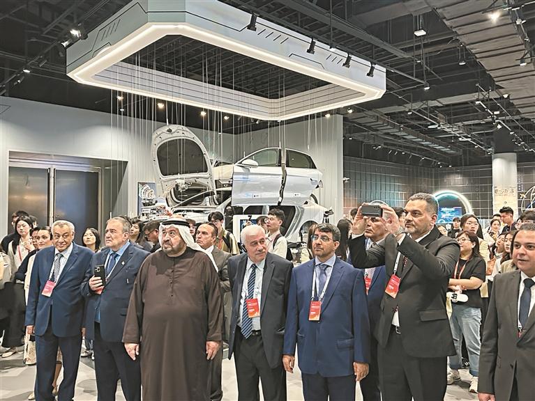 长安云·西安科技馆设置互动式展品展项500余项,集科技、艺术、自然、体验于一体。在一款“西安造”新能源汽车的模型前,市长和嘉宾们驻足细看,有人走近观察车身细节,有人举起手机拍照。透过这件展品,人们看到的是西安制造向绿色化、智能化加快迈进的现实图景。